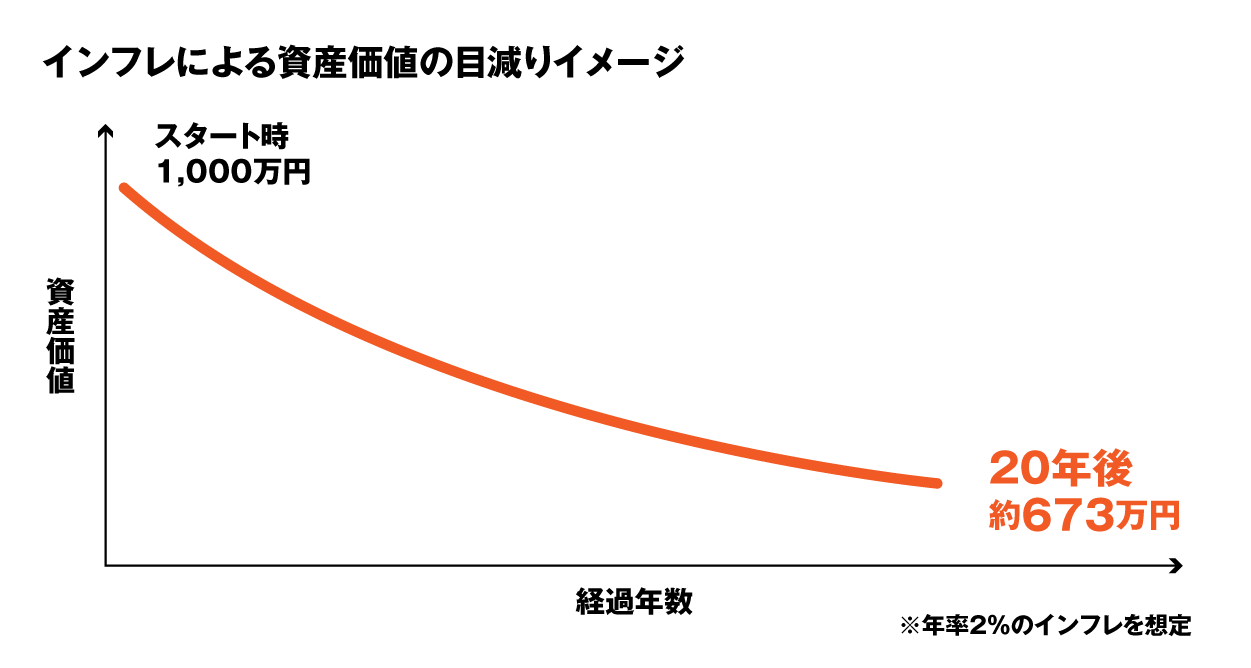 これが、お金の価値が目減りするインフレリスクです。