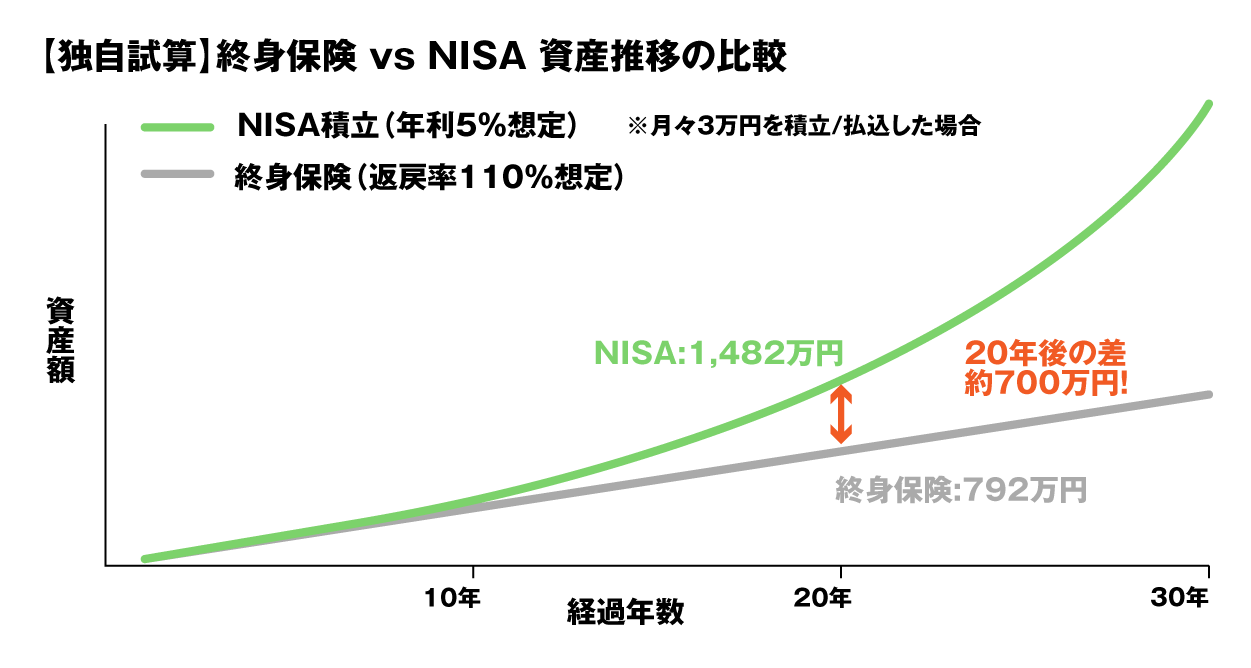 【独自シミュレーション】終身保険 vs NISA積立、20年後の資産額比較