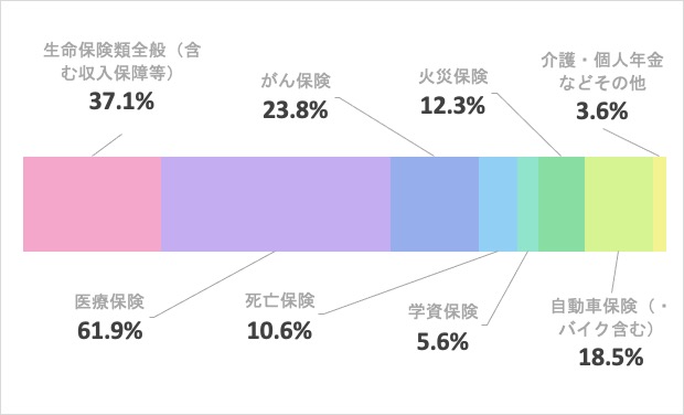 - 生命保険、医療保険、がん保険、個人年金保険、学資保険、自動車保険、火災保険、傷害保険、ペット保険 など