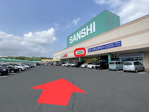 当店はスーパーサンシ桑名店内にございますので、お買い物のついでにお越しください。お車でお越しの方は無料の施設駐車場がございます。
