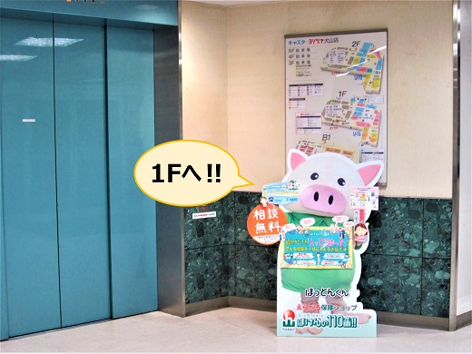 キャスタ専門店側のエレベーターで1Fまでおりていたき