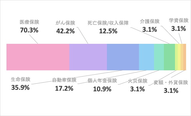 - 生命保険、医療保険、がん保険、個人年金保険、学資保険、自動車保険、火災保険、傷害保険、ペット保険 など