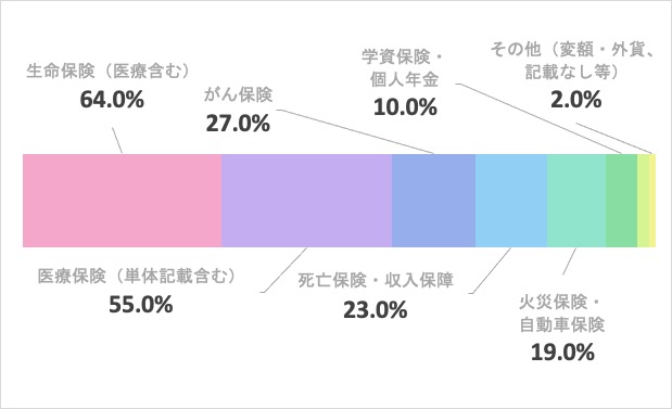 - 生命保険、医療保険、がん保険、個人年金保険、学資保険、自動車保険、火災保険、傷害保険、ペット保険 など